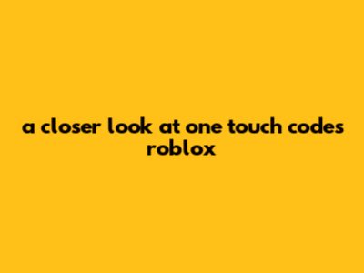 A Closer Look At One Touch Codes Roblox