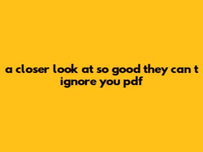 A Closer Look At So Good They Can't Ignore You Pdf