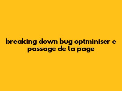Breaking Down [Bug] Optminiser E Passage De La Page