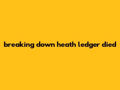 Breaking Down Heath Ledger Died
