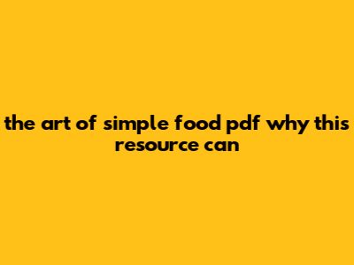 The Art Of Simple Food PDF: Why This Resource Can